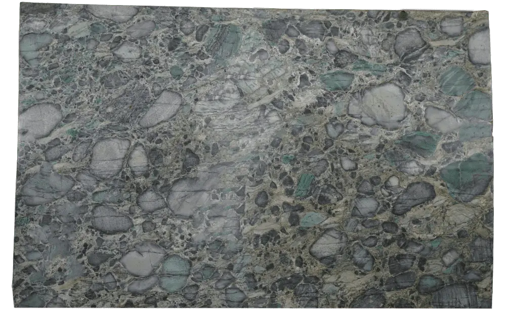 The Paladium Smeralda Granite Slab showcases a vibrant polished green surface that captivates with its richness and depth. This exquisite granite is characterized by its intense green color interspersed with lighter green nuances and occasional hints of white and grey, creating a stunning visual landscape. The polished finish enhances the vivid colors, making them pop while providing a glossy, reflective surface that adds an element of luxury and brightness to any space. Ideal for high-end kitchen countertops, dramatic bathroom vanities, or as an eye-catching feature in entryways, Paladium Smeralda Granite is not only visually impressive but also extremely durable. Its resistance to scratching, staining, and heat makes it a practical choice for busy environments, ensuring long-lasting beauty in both residential and commercial applications.