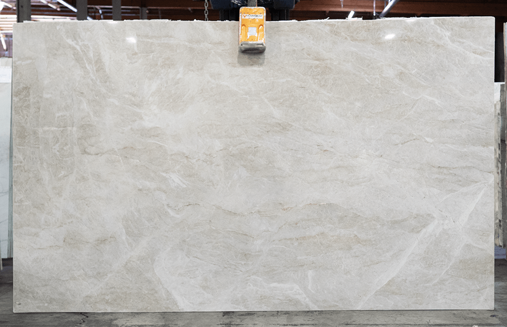 Elevate your space with the refined elegance of the Perla Venata Quartzite Slab, now available in a polished beige finish. This exquisite quartzite features a warm, creamy beige hue enriched with subtle veining and cloud-like patterns that add depth and visual interest. The polished surface enhances the natural colors and intricate details of the quartzite, creating a radiant, glossy finish that reflects light beautifully, adding brightness and a sense of expansiveness to any area.