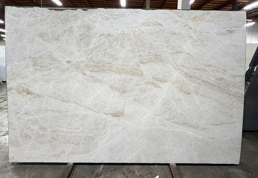 Experience the timeless allure of Taj Mahal Quartzite Slab in a honed finish, showcasing a soothing beige tone that exudes warmth and elegance. The honed surface provides a smooth and matte texture, creating a subtle yet sophisticated aesthetic for your interior design projects. Whether used for kitchen countertops, bathroom vanities, or flooring, this versatile stone adds a touch of understated luxury to any space. Elevate your decor with the natural beauty and versatility of Taj Mahal Quartzite Slab in a honed finish, bringing a sense of tranquility and sophistication to your home or commercial environment.